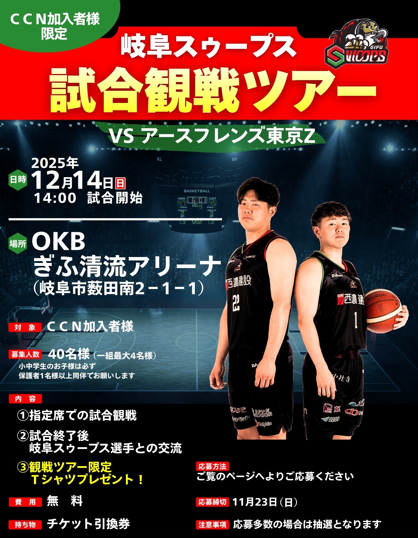 CCN加入者様限定!岐阜スゥープス試合観戦ツアー開催!