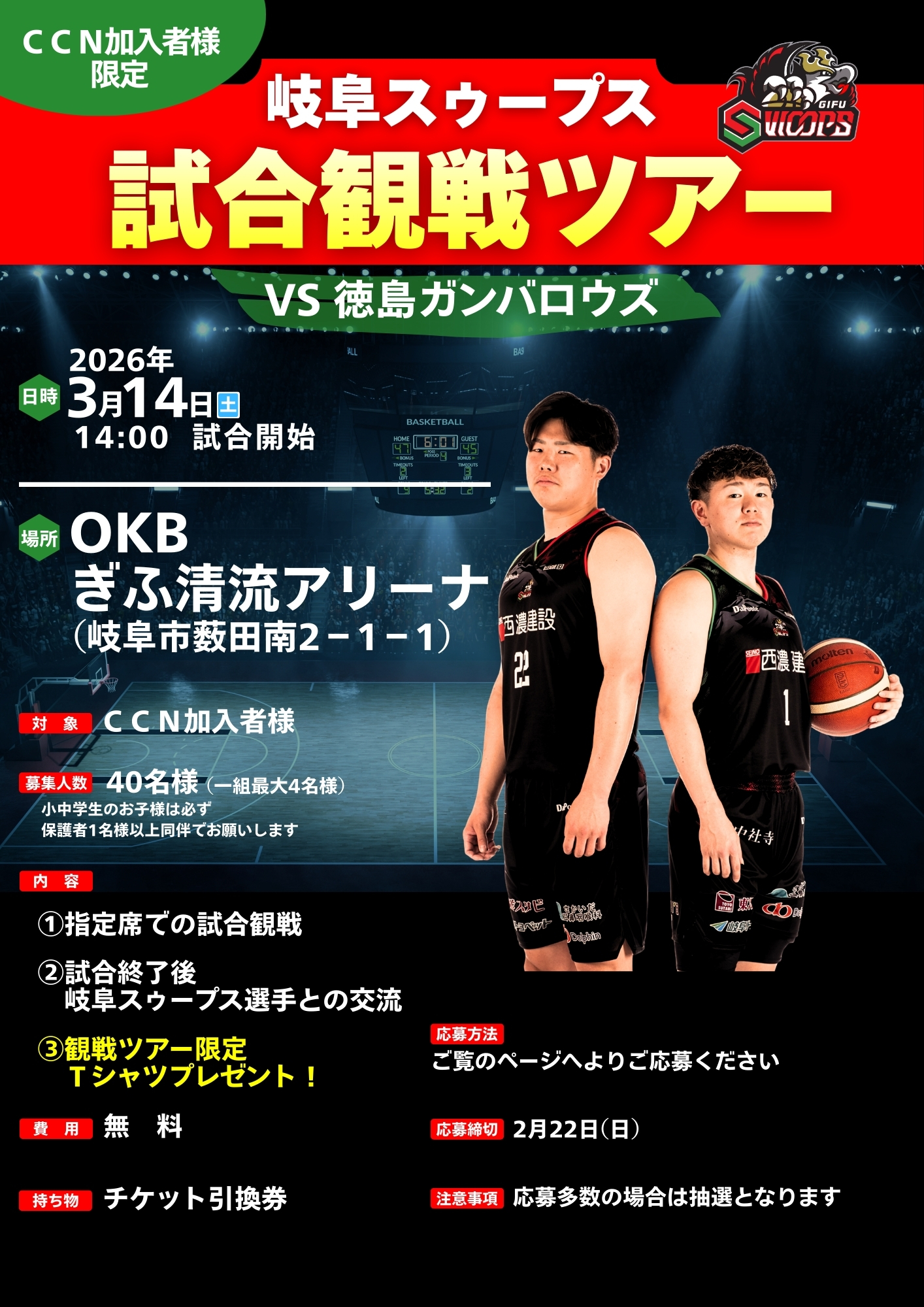 CCN加入者様限定!岐阜スゥープス試合観戦ツアー開催!