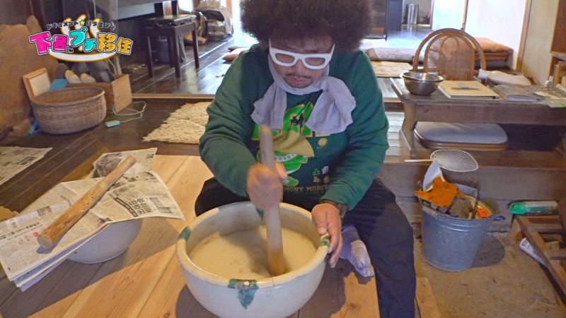こんにゃく作りを手伝い、出来立てを食べました。