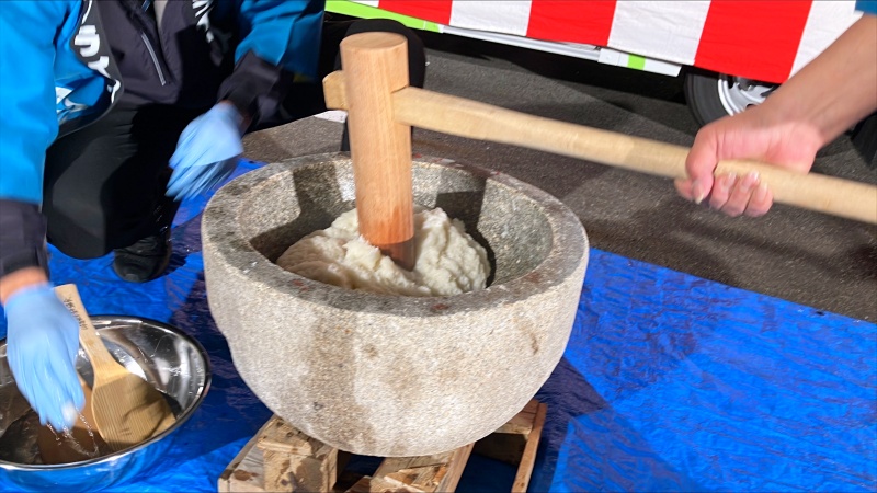 お正月にぴったりの企画では、ぎふわっかでお馴染みのギフライスさんにご協力いただき、お餅つきを行いました❕