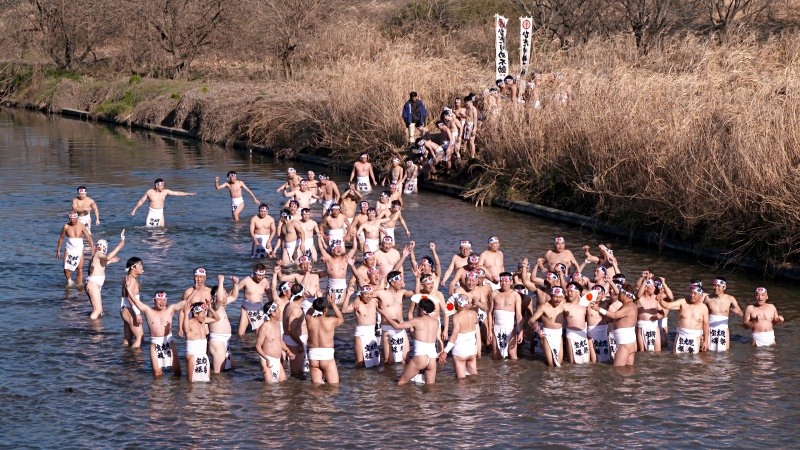 水の都を舞台に厄年を迎える白装束の男衆たちが、厳寒の川を威勢よく渡り、1年の無事を祈ります。