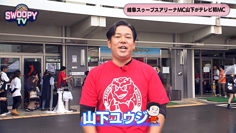 岐阜スゥープス アリーナMCの山下ユウジ、FALCON、垣田 祐奈が