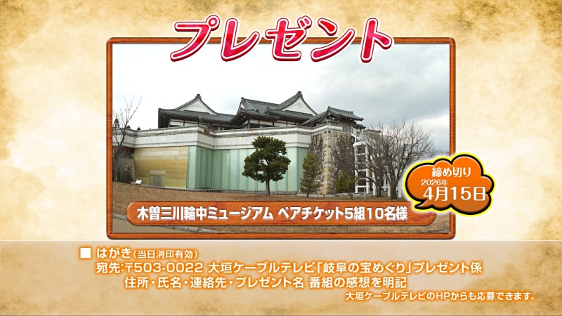 岐阜県全42市町村の“宝”を、県内のケーブルテレビ宝探し探検隊がリレー方式に紹介していきます。
